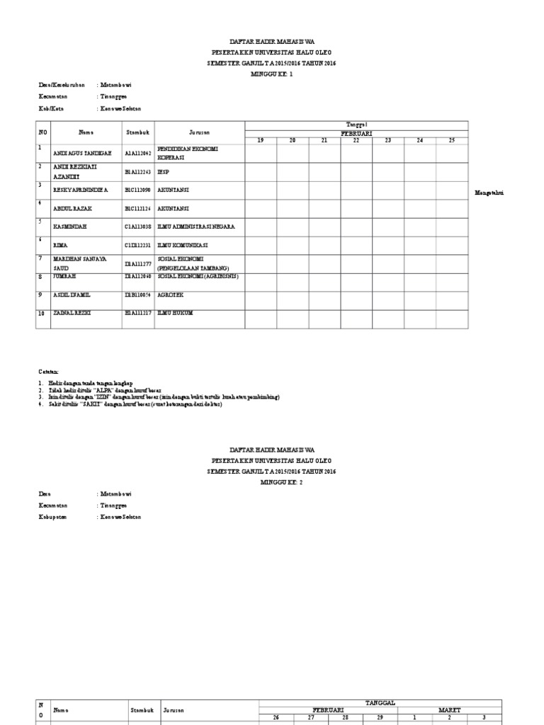 Format Absensi Mahasiswa - Cara Membuat Daftar Hadir Kuliah Dengan Microsoft Excel Youtube - Guna memudahkan pekerjaan guru dalam kegiatan absensi siswa bapak/ibu guru dapat memanfaatkan.